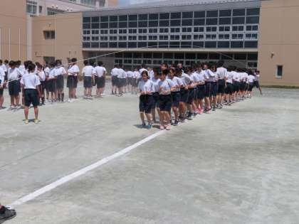 2年生の学年練習の最後は大縄跳びを行いました。どのクラスも少しずつ回数が上がり、成長を感じられます。今日は6時間目に学年練習がありますが、学年練習の成果を他学年の前でも出せるように頑張りましょう。お疲れさまでした。(田村)