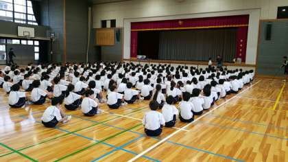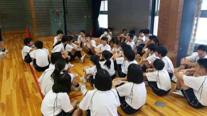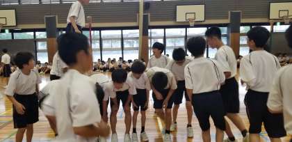 雨天のため体育館での実施となりましたが、大縄はみんなで掛け声をあげて頑張っていました。また、貴船流しの練習ではみんなで改善点を出しあい、チームとしてまとまろうという気持ちが見えました。