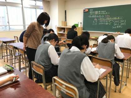 3年生の数学の授業です。数の関係性を見つける学習です。予想をしてから、それが正しいかどうか証明する課題に取り組んでいます。関係性について複数の予測が成立するところが面白いと思いました。(副校長)