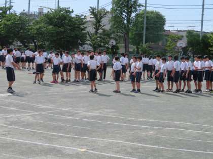3年生の運動会朝練習の様子です。体操後に各クラスの体育委員を中心に、自分たちで集中して練習に取り組んでいます。ケガのないように頑張ってください。(田村)