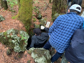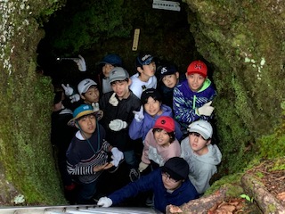 フィールドワークの様子です。森の中には、自然が作った穴がたくさんありました。(伊井)