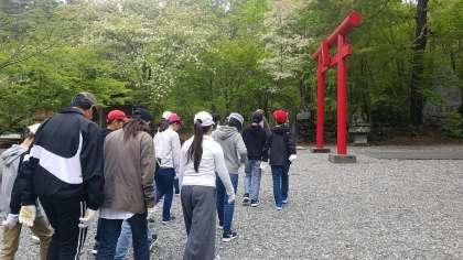 河口湖フィールドセンターへ着きました。班に別れてフィールドワークが始まりました。真剣に話を聞いています。