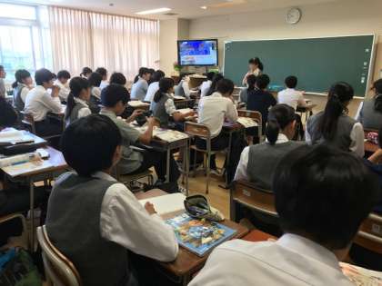 3年生の社会の授業です。明治時代初期の政治について、政策のねらいや実際に行われたことを丁寧に学習しています。(副校長)