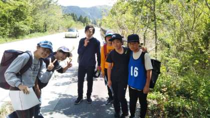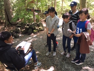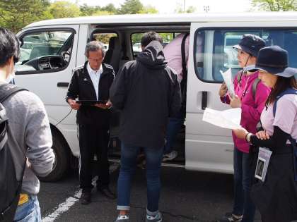 生徒たちは迷いやすい場所など各ポイントにて先生方のアドバイスを受けます。その場所に先回りするため休暇村の方に車で送っていただきました。