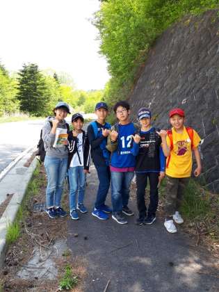 爽やかな五月の風が吹きわたる新緑の富士山麓樹海はホントに気持ち良いです。生徒たちの表情にもその気持ちが表れています。