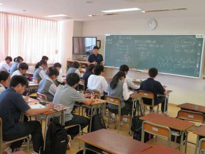 3年生数学の授業の様子です。発展、標準、基礎のそれぞれのクラスで式の計算を利用して数の性質を証明するという授業を行っています。難しい内容ですが、生徒たちも頑張っています。(田村)