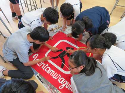 2年生クラス旗作成の様子