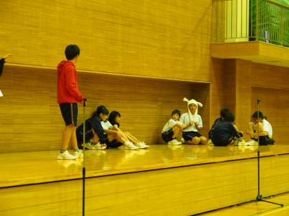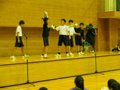 夜は昨晩に引き続きレクリエーションです。今日は各クラスの出し物大会。