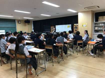 1年生の音楽の授業です。2曲の音楽を鑑賞し、ワークシートに作業をしています。楽器のもつ効果の違い(特長)をいかしながら、オーケストラのハーモニーが完成されていることを学んでいます。(副校長)