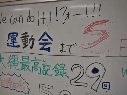 もちろん授業中は見えない後ろのホワイトボードに書かれています。この時期の教室の後ろには各クラスとも、運動会に向けた熱い思いとメッセージが盛りだくさんです。