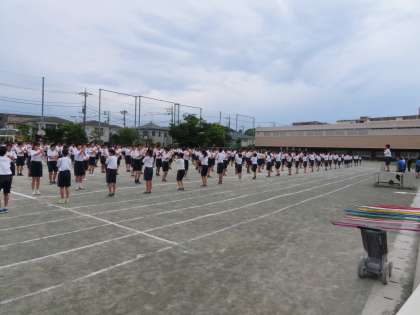 本日6時間目、運動会の全校練習を行いました。ラジオ体操と行進の練習では、予行前に3学年が揃う最後の機会でしたが、それぞれの学年ともよく頑張って取り組んでいました。(田村)