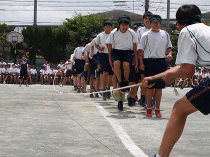 大縄については練習時間がない中で、いかにみんなの気持ちと呼吸を合わせるかにかかっています。写真を撮っていても、全員が一回跳べるのは実は‘すごいこと’なんだ、とわかります。