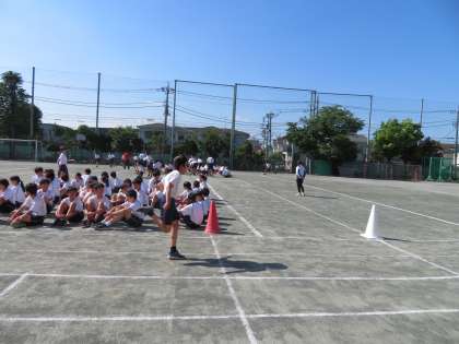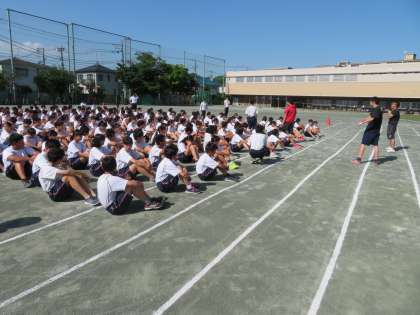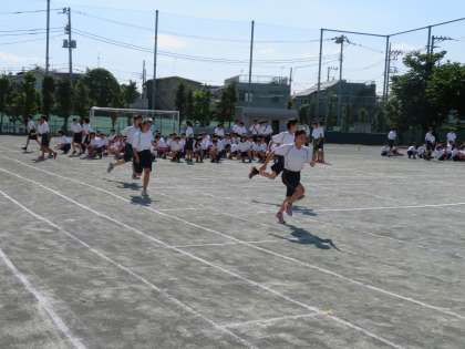 最初は全員リレーを行いました。各クラス全力を振り絞って行い、モチベーションが上がっています。(田村)