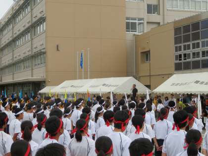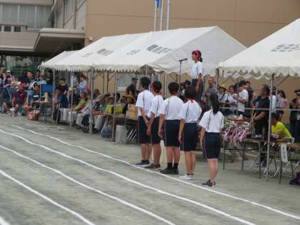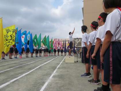 開会式の様子です。選手宣誓では、これまでの練習、そして今日にかける意気込み、気持ちが伝わりました。すばらしい運動会ができる、そんな期待のもてる開会式でした。(田村)