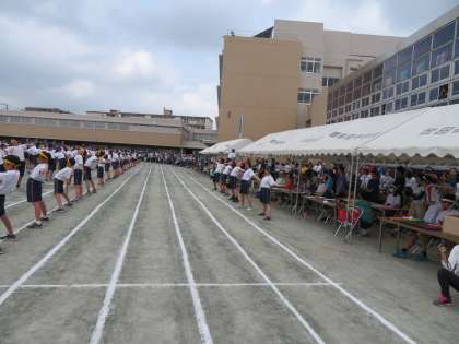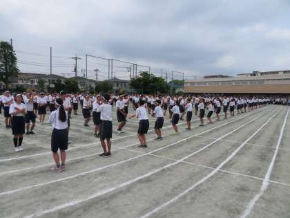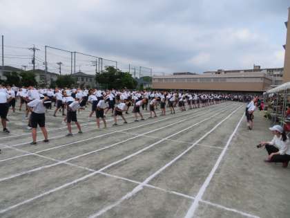 ラジオ体操の様子です。これまでの練習の成果を発揮し、自信をもって一人ひとりができています。今年もフナキボのラジオ体操の伝統が引き継がれました。(田村)