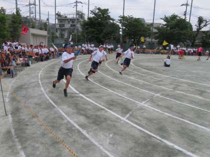 1年生のクラスリレーの様子です。7クラス、どのクラスも一生懸命走っています。上級生も応援し、10期生を盛り上げている姿もありました。(田村)