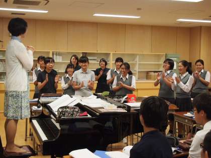 授業の最後にはリズムのゲーム。先生が手を叩いた通りに、手拍子をします。4回やって最後に残るのは何人?というもの。聞くのと実際にやってみるのとでは、結構違いがあることに気づきます。でも楽しそう。