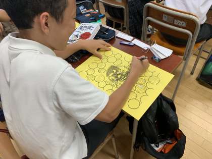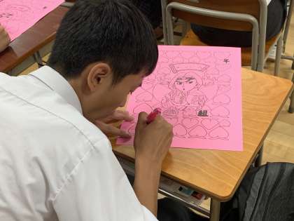 3年生は、運動会の寄せ書きを一人一人に書いています。