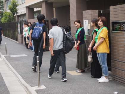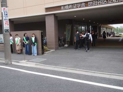 3年1組の保護者と生徒によるあいさつ運動2日目です。朝からさわやかにあいさつをしていただいています。