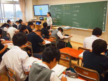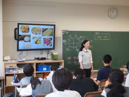 2年生理科の授業です。前時の心臓の働きの復習をしてから、生命を維持するために必要な5つの栄養素を学んでいます。美味しそうな料理の画像ですが、この中には人間の生命を維持するためのどんな栄養素を含んでいるのかを確認しました。