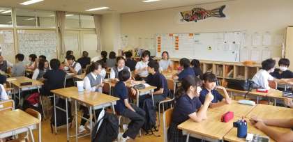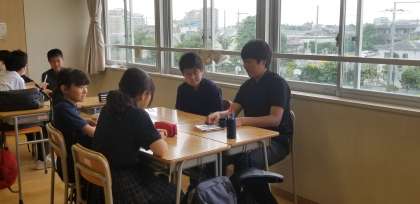 「アドじゃん」という取り組みで、みんなで出した指を足し算した数字により決まったお題のもとみんなで話しました。芸能人やテレビの話題が多く、みんな盛り上がったようです。また、日本語の授業で学んだ「積極的な聞き方」についても実践していました。