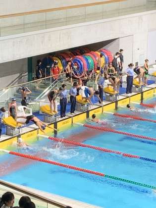 3年間苦しい練習に耐え、初めて辰巳で泳ぐ生徒がいます。