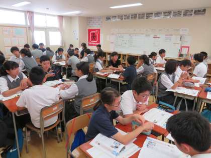2年生道徳の授業の様子です。今日は日本の文化や伝統を伝えていくために大切なことについて考えました。また、話し合い活動、新聞の活用、ICTの活用など授業展開も工夫して行いました。(田村)
