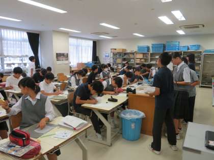 2年生の美術、国語、体育の授業の様子です。集中して取り組む場面、作業や活動など積極的に取り組む姿勢などメリハリをつけて各授業に取り組むことができています。(田村)