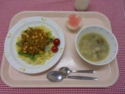 世田谷区の栄養士みんなで考えた「せたがや食育メニュー」から、根菜の和風タコライスと長ネギのとろみスープを出しました。生徒のみなさんにもレシピがのった食育パンフレットを配布しました。今回のパンフレットのテーマは「朝ごはんを食べよう」です。