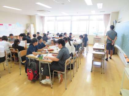 1年生道徳の授業の様子です。SNSの使い方や著作権、肖像権などについて考える授業を行いました。グループ活動なども取り入れ、積極的に授業を受けています。(田村)