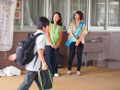中学生という年代は、恥ずかしさから、大人から「おはよう」と声をかけらてれても、正面を向いて「おはようございます」がしにくい年頃。しかし、そういう生徒も少し照れながら肯いてくれます。それだけでも、気持ちは伝わります。