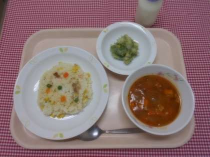 ケニアでは、主食としてお米もよく食べられています。給食にも出した「ピラウ」は、ピラフのような炊き込みごはんです。