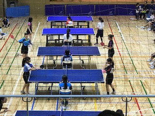 今、鷗友学園にて、夏季卓球大会女子の部個人戦が行われています。応援の声が飛び交う中、一本を争う熱いラリーが続いています。特に3年生は最後の戦い。頑張ってください。(副校長)