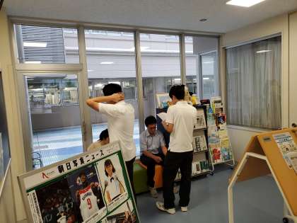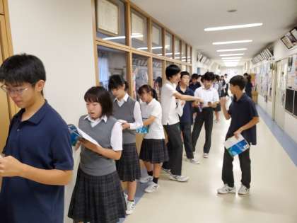 フナキボの廊下には朝から長蛇の列が…!その正体は英語のリーディングを待つ生徒たちの列でした。