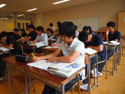 このクラスでは、立って勉強する机があり、集中力を発揮するのに一役買っています。どの教室にも個性があり、かつ充実しています。