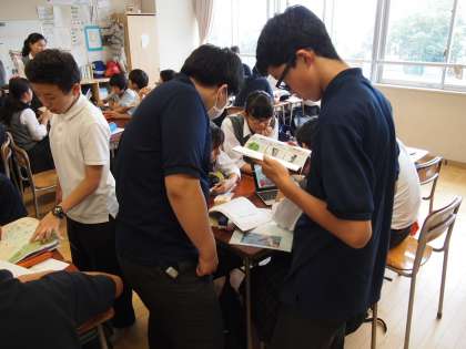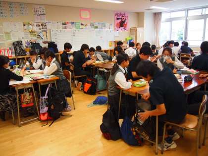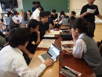 8期生の教室では、早くも奈良での班行動の計画を立てています。ガイドブックやタブレット、地図を駆使して検索中です。