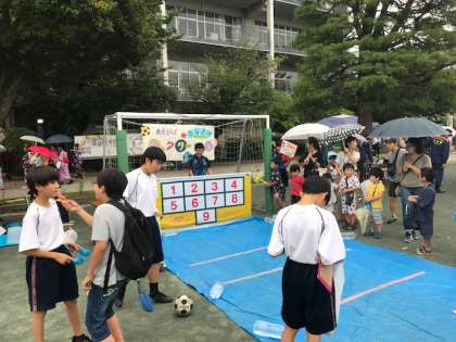 今、船橋小学校では、恒例のふなっ子夏まつりが行われています。小雨が降る中ですが、たくさんの人が集まっています。ユネスコスクールの方々も見学に来ていらっしゃいます。 本校からは、卓球部員たちがお手伝いに参加しています。(副校長)