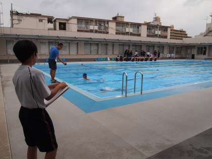 今日は久しぶりに午前中は傘の出番がない天気になりました。水の中も心地よい水温(?)になっていることを願いつつ、8期生の水泳の授業です。やはり夏はプールですね。