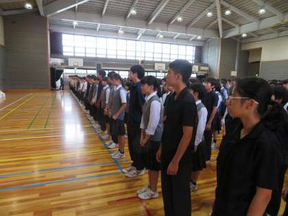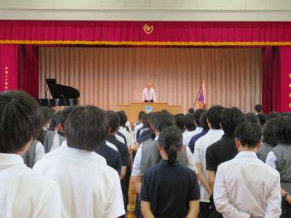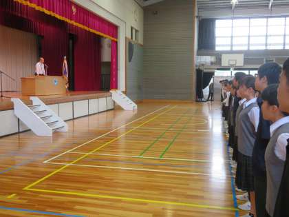 終業式の様子です。今日で1学期も最後になりますが、しっかりとした態度で校長先生の話を聴くことができています。(田村)