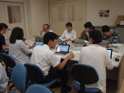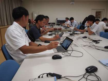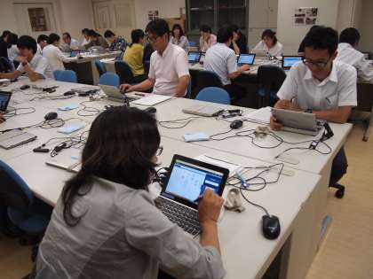 現在の学校現場では様々な課題があり、教員もそれに対応していく必要があります。中学校では授業の後は部活動があるため、全員が揃う時間が確保できないのが実情です。わずかの隙間をぬって研修をしています。画像は今月の職員会議後にeラーニングの研修をしている場面です。