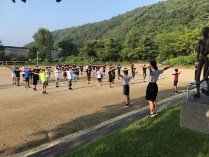 おはようございます。みんな元気です。体操でしっかりと身体を動かして、今日の活動が始まりました。(副校長)