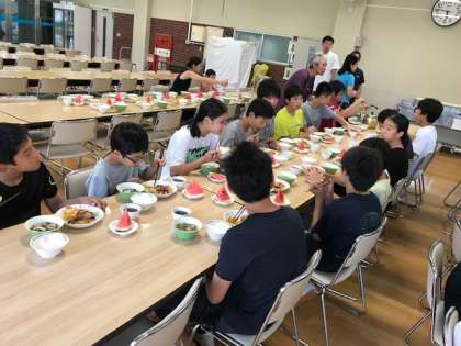 本日も当番の準備が早かったので、かなり早く夕食を食べ始めました。(副校長)