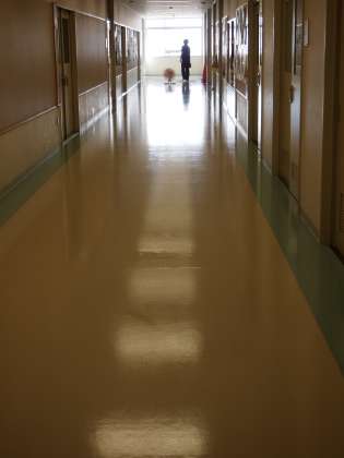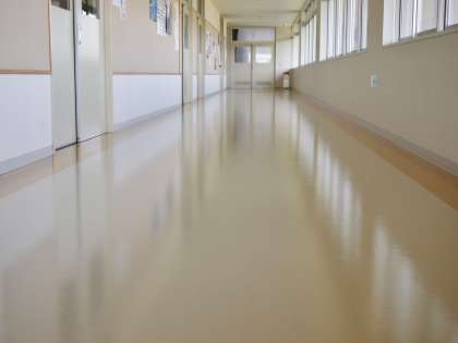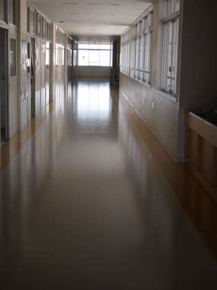 とにかくプロの方の仕事は手早くしかも仕上げがすばらしい。フナキボでは、もともと主事さんが毎日丁寧に掃除をし、美化委員会などの努力のかいあって全校生徒たちも美化活動にはとても熱心に取り組んでいます。だからこそ、美しい床がなお一層いっそう輝いています。「ほんとうにきれいな学校ですね」と来客の方がつぶやくのもうなずけます。