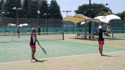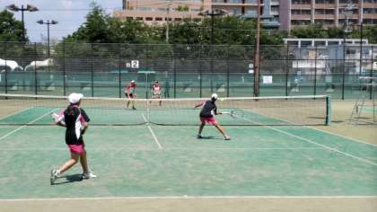 本日、女子テニス部は世田谷の区民大会に出場しています。ダブルスの試合に全4ペアで出場し、その中の2ペアは明日に行われる4回戦以降に勝ち残ることができました。熱風吹きすさぶ中、足を動かして懸命にボールを追いかける姿に成長を感じました。