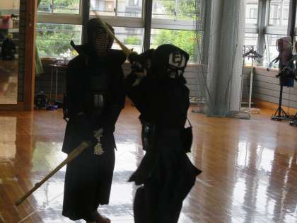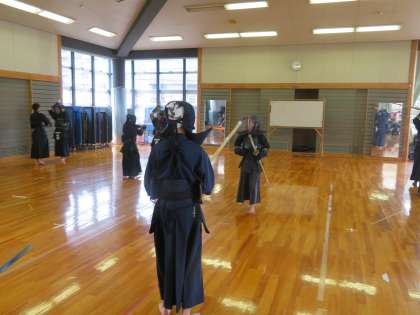 剣道部の練習の様子です。防具を着て、打ち込みの練習に取り組んでいます。熱中症に充分気を付けて練習に取り組んでください。(田村)