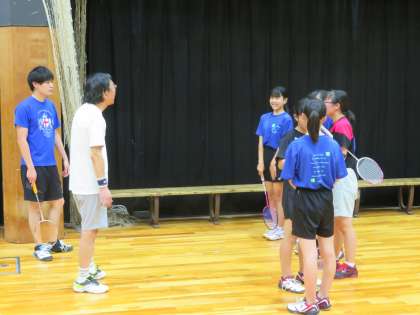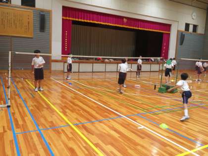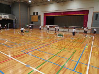 バドミントン部の練習の様子です。左右に動く練習では、1年生が頑張って食らいついています。この調子で頑張りましょう。(田村)