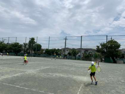 グラウンドを全面使って、都市大付属中学校と練習試合を行いました。お盆休み明けの久しぶりのテニスだったので、生き生きと楽しくプレーしていました。(伊井)