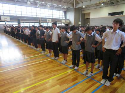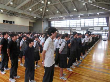 始業式の様子です。本日から2学期が始まりますが、集合や整列などフナキボ生らしく時間前に集合が完了しました。