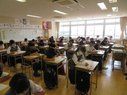 各学年の夏休み明けテストの様子です。どの学年も真剣に取り組んでいます。(田村)