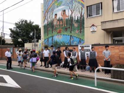 こちらは千歳台小学校正門前での活動の様子です。朝早くからありがとうございます。(副校長)